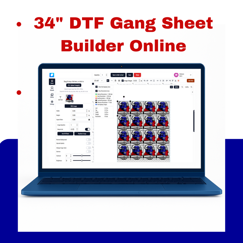 34" DTF Gang Sheet Builder Online 2 reviews Share WhatsApp Deel X Pin it Messenger Email 34" DTF Gang Sheet Builder Online 2 reviews Share WhatsApp Deel X Pin it Messenger Email Product form Size Free pickup in our shop(s) 34" × 12" 34" × 24" 34" × 36" 34" × 48" 34" × 60" 34" × 72" 34" × 84" 34" × 96" 34" × 108" 34" × 120" 34" × 132" 34" × 144" 34" × 156" 34" × 168" 34" × 180" 34" × 192" 34" × 204" 34" × 216" 34" × 228" 34" × 240" Free pickup in our shop(s) $9.00 Excl. VAT Build your own Gang Sheet Quantity Add to cart This item is a recurring or deferred purchase. By continuing, I agree to the cancellation policy and authorize you to charge my payment method at the prices, frequency and dates listed on this page until my order is fulfilled or I cancel, if permitted. Guaranteed secure & safe checkout.